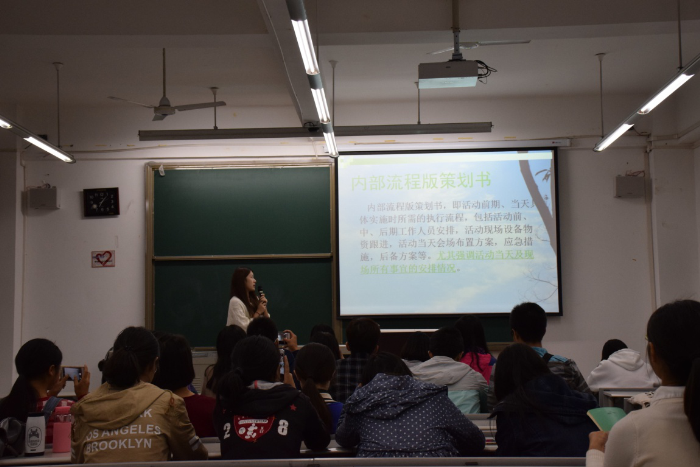 培训第一项是陶汪洋带来的策划培训,由于之前对策划方面接触得比较少,部员们都听的格外认真。主讲人用轻松诙谐的语调为培训增彩不少,还用提问的方式与部员们进行互动,培训过程气氛良好。