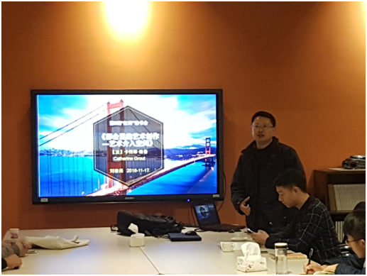 本次活动荣幸邀请到了建筑与设计公司经理助理、美术馆馆长刘春尧副教授,为到场同学们带来了《艺术介入空间:都会里的艺术创作》一书,为同学们讲解何为公共艺术。公司团委书记方翰老师主持本次读书会。