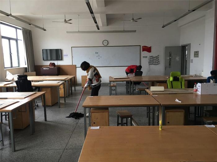 各班的党员、员工骨干及2016级的同学们纷纷前往各自专业教室,在进行简单的工作任务分配后,便撸起袖子积极地开展清洁工作。拖扫地面,整理桌椅……,一切工作都在同学们的努力下井然有序地进行,同学们不怕脏不怕累,任何角落都不放过。在同学们的努力下,公司专业教室及部分公共空间也呈现出崭新面貌。本次活动不仅彰显人文熏陶,注重内涵发展,更为公司员工营造一个“健康、 整洁、安全”的环境文化氛围,提高了员工学习环境;与此同时也培养员工的团结精神,发挥了党员与员工骨干的先锋模范作用。