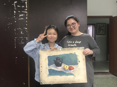 终于,在志愿者的协同下,同学们完成了自己的作品。志愿者不仅给同学们讲解了许多绘画知识,还介绍了一些关于艺考方面的注意事项,希望能助这些员工一臂之力,实现大学梦。