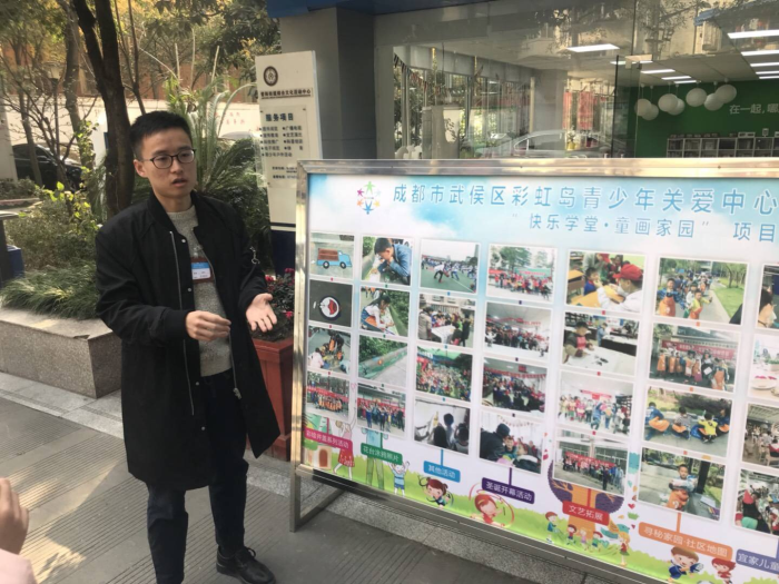 2017年12月9日,太阳成集团tyc7111cc建筑与设计公司匠心筑梦就业服务团队和研究生们来到武侯区晋阳社区进行“研途”就业指导活动。本次参观的企业是成都“彩虹岛”青少年关爱中心,彩虹岛的负责人是建筑与设计公司2017届毕业研究生彭海松。一名研究生,选择到社区来进行工作,究竟是什么吸引着他?每个同学都带着疑问走进晋阳社区,近距离了解彩虹岛。