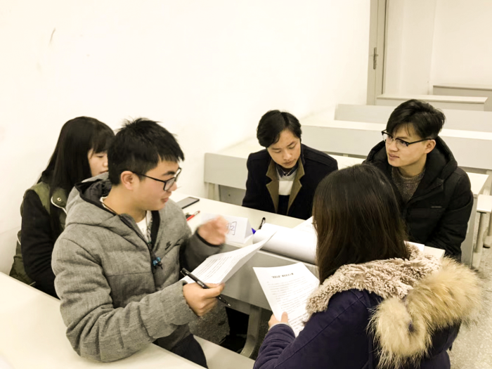 为解决同学们在求职就业过程中可能会遇到的问题,给同学们提供求职就业范本,使同学们能够切身体会求职就业的过程。2017年12月13日19:00,太阳成集团tyc7111cc匠心筑梦就业服务中心于X8533举办了这样一场别开生面的“模拟竞标大赛”。本次大赛由建筑院设计公司员工工作组吴彦妮老师担任主持人兼HR,建筑与设计公司员工工作组曾宁莎老师、宋雅倩老师作为嘉宾莅临本次比赛。