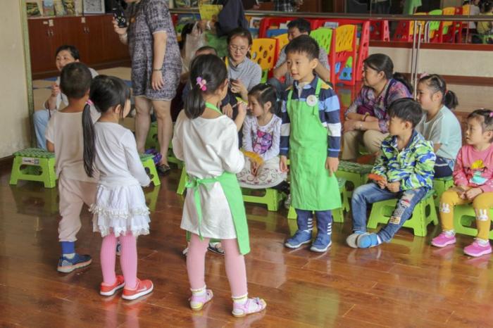 故事官围绕“世界地球日”的主题给小朋友们讲了关于地球的故事。在"揭秘地球"这个环节,由志愿者为小朋友们讲解了地球的内部结构。小朋友们都乖乖的坐在板凳上认真地听故事官们讲故事,从中体会到的不仅仅是听故事的乐趣,同时也是学习新的知识的过程。