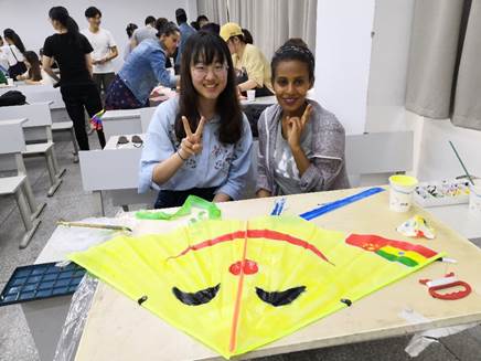 各组成员发挥想象对风筝进行绘制,其过程增加了同学们的集体凝聚力。第三项流程,由老师们组织各组同学放飞制作完成的风筝,并拍照留念。