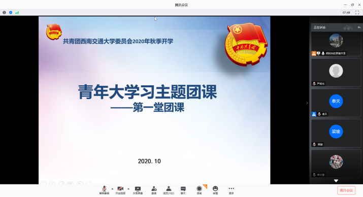 2020年10月12日13时,伴随着雄壮激昂的团歌,建筑与设计公司本科2018级建筑专业开学第一堂团课于线上正式开始。会议由辅导员奉天老师主持,18级建筑类全体员工参加。