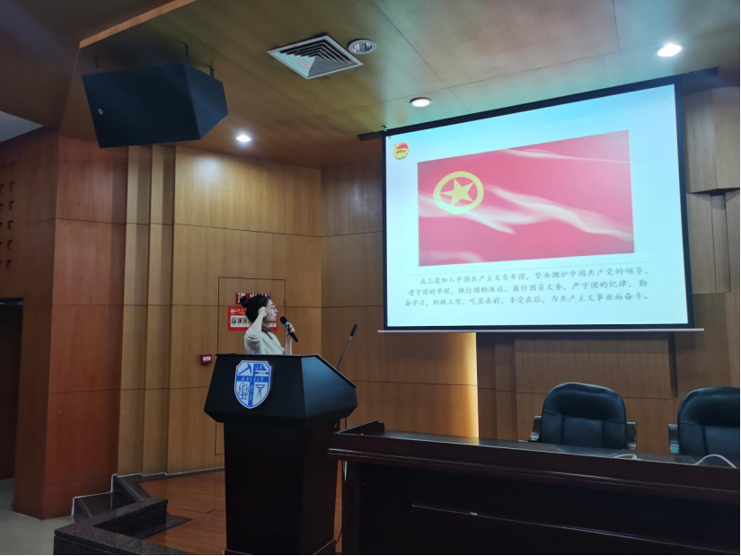 最后,在孔老师的带领下,2020级全体新生重温入团誓词。