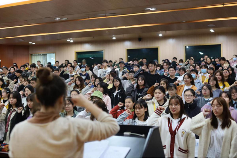 当天下午四点,同学们来到了校图书馆第二报告厅,准备学习老员工涯的第一节团课知识。本次团课由2020级建筑与设计公司辅导员孔翔榆和王文静共同主持,建筑与设计公司2020级全体新生参与本次团课学习。
