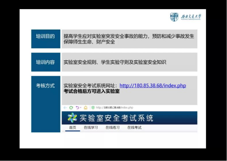 在具体培训中,齐老师阐明培训目的、培训内容以及考核方式。本次安全培训的内容主要为实验室安全规则、员工实验室守则及实验室安全知识。考核方式为实验室安全考试系统,另有详细的实验室安全使用规则,包括陶艺实验室、三位雕刻实验室、绘画创作工作室、纤维艺术工作室等。整个培训过程中,2020级同学们认真聆听并做好记录,实现了良好的安全教育效果。