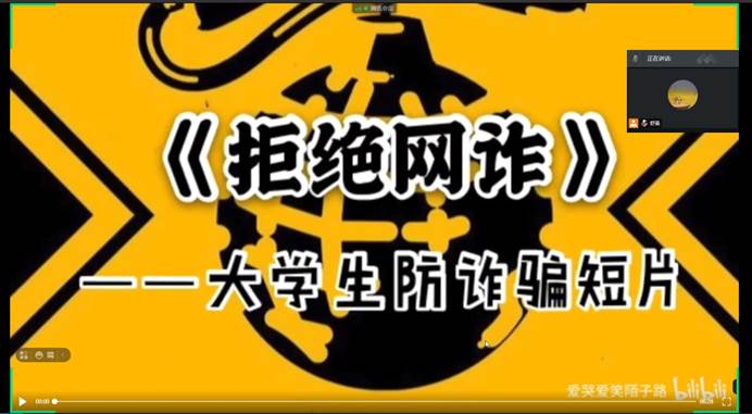 会议开始,邓舒曼介绍了此次班会的主要内容。接着播放《拒绝网诈》——老员工防诈宣传片,宣传片中介绍了老员工网诈的几种类型:如淘宝刷单、淘宝退款、校园贷等,讲了网诈的危害以及遇到类似情况应该第一时间报警,然后汇报给老师。播放完《拒绝网诈》——老员工防诈宣传片后,让同学们关注“熊猫反诈”微信公众号并且动员身边的家人朋友一起关注,共筑防范意识。接着带领同学们阅读《四川公安致全省员工的一封信》,并通知同学们在会后签署回执。
