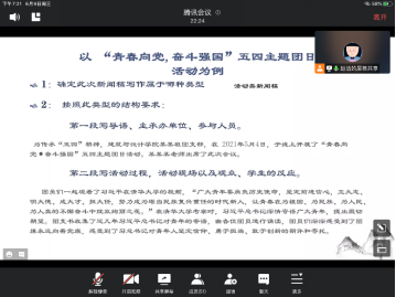 为了进一步提升公司员工干部新闻稿撰写能力,增强员工干部综合素质,建筑与设计公司团学中心、团委员工会于2021年6月9日晚上19点开展了建筑与设计公司员工干部“青马工程”系列培训之“新闻稿写作”专题培训。本次培训由公司员工会宣传部部长赵洁同学主讲,本科及研究生员工干部参与学习。