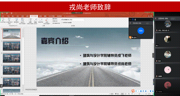 讲座伊始,建筑与设计公司辅导员老师、研风景园林党支部支书戎尚老师进行致辞,对进行分享的各位同学表示了感谢,戎老师强调了本次活动的初衷,希望同学们把握机会,积极向优秀的同学学习。