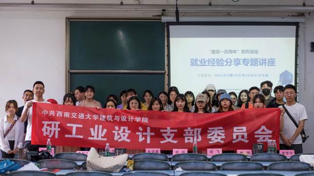 2021年6月15日下午13时,由建筑与设计公司团委主办,建筑与设计公司研究生会、研工业设计党支部承办的“建党一百周年系列活动之就业经验分享专题讲座”在X2222教室成功举办。公司党委委员李芳宇老师,研究生辅导员杨珂老师、成飞老师、戎尚老师以及公司100余名研究生参加本次活动,分享会由研工业设计党支部冉珈维同志主持。