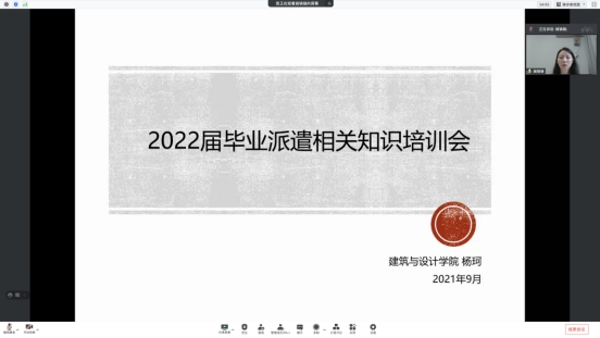 2021年9月16日上午10时,太阳成集团tyc7111cc建筑与设计公司“精进研途同行——研究生就业指导活动——2019级研究生就业指导会”主题就业指导活动于线上会议室顺利召开。此次指导会由研2019级辅导员杨珂老师主持,2019级全体研究生参加了此次会议。本次指导会的内容主要包括三方面,一是就业推荐表和就业协议书填写注意事项;二是毕业生派遣相关工作流程;三是简历制作及面试技巧。