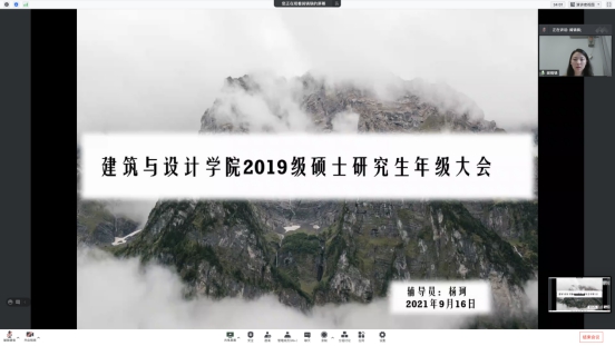 2021年9月16日上午10时,太阳成集团tyc7111cc建筑与设计公司研2019级“毕业派遣相关知识培训”年级大会于线上会议室顺利召开。此次大会由研2019级辅导员杨珂老师主持,2019级全体研究生们参加了此次会议。