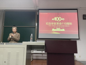 会议第一项,由入党积极分子胥欢芯同志为全体与会人员进行辛亥革命相关历史展示与介绍。胥欢芯同志通过演示文稿及视频分享的形式为与会人员深度分析了辛亥革命的时代背景、事件经过、重要意义及会议精神。