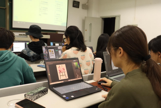 罗熳蕾同学向新成员系统地介绍了PS整体界面、窗口组成、分辨模版等基本知识。在同学们对PS的操作有了基本了解后,针对PS的常用功能,她对“图像色彩”“滤镜”“选区”等一系列操作做了详细的讲解,并鼓励同学们亲自动手操作。学习过程中,同学们热情高涨,提出众多疑惑,罗熳蕾同学也一一做了耐心的解答,带领同学们完成最终的学习。