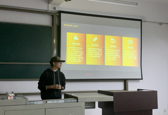 刘植同学介绍道这次培训会旨在培养成员们对于活动策划案的认识,了解举办活动的台前幕后,加深对于活动举办各方面的理解,为各位同学提供一个好的交流学习平台。同时他也希望成员们今后能针对策划案方面提出创新的想法,为活动的举办带来更多的新意与吸引力。