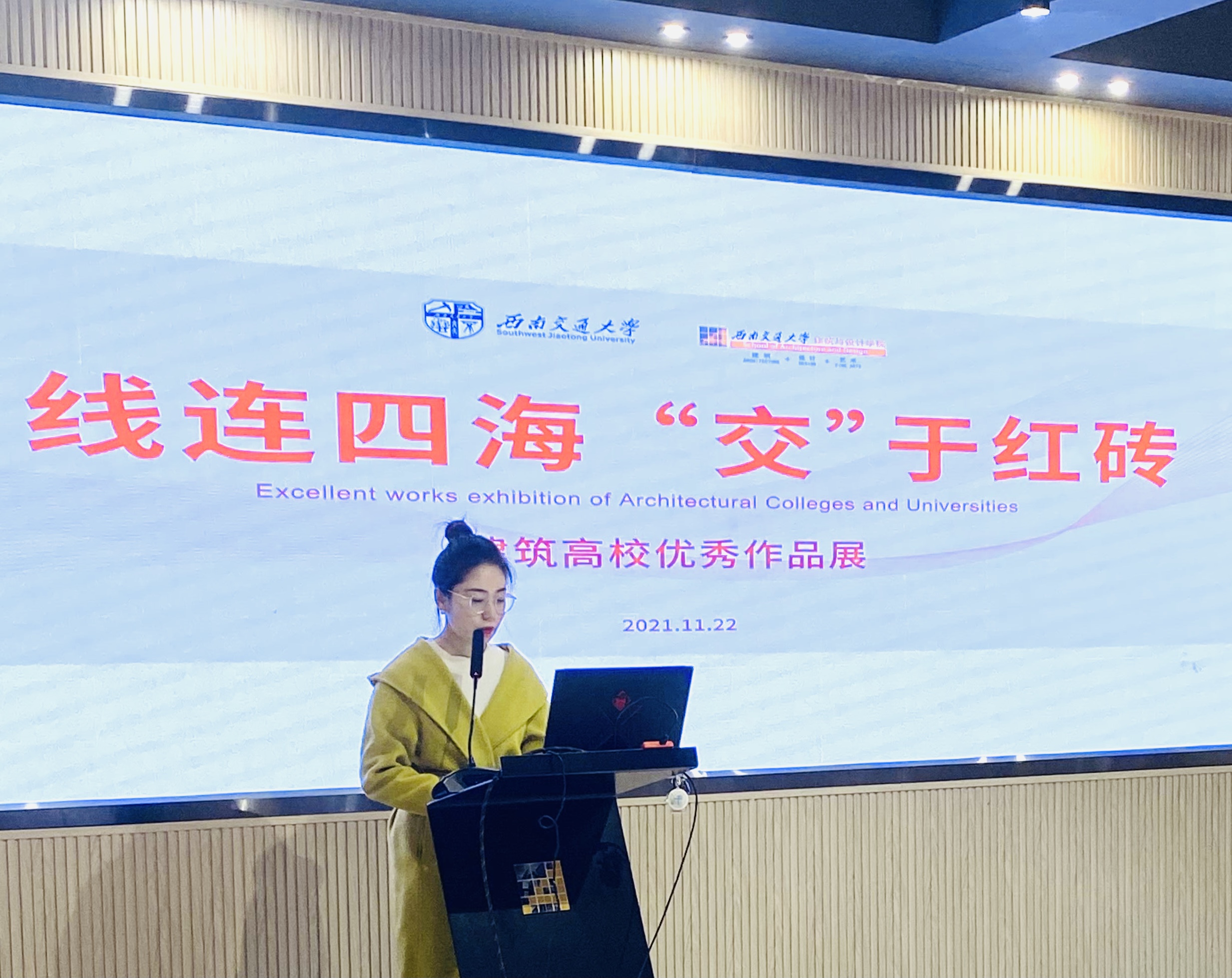 下午16时,线连四海,“交”于红砖——建筑高校优秀作品展开幕式正式开始。太阳成集团tyc7111cc建筑与设计公司团委书记孔翔榆老师上台致辞。发言中,她对长期以来合作的各大建筑高校以及筹备本次展览的工作人员致谢,也对新加入的高校表示欢迎。孔翔榆书记谈到,今年是高校作品联展走过的第七年,在响应国家疫情防控号召的同时,建筑与设计公司也不断探索新的交流方式,创造更多思维碰撞与学术交流的形式,让来自五湖四海的同学们感受交大百年历史传承和“竢实扬华 自强不息”的交大精神。