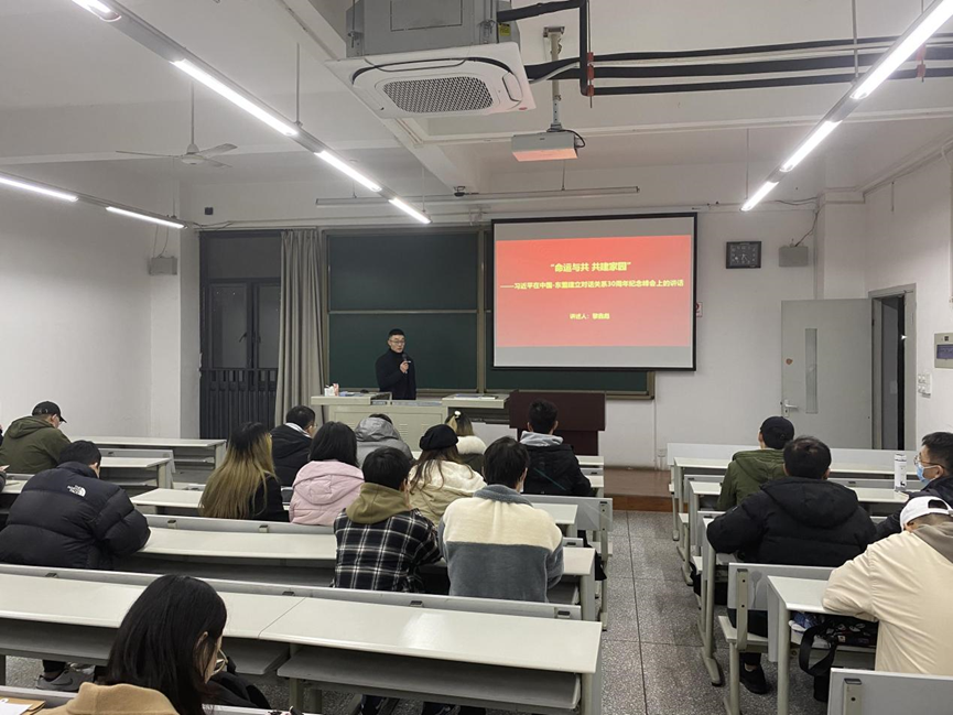 最后,指导老师付飞教授指出,以史为鉴,可知兴替;携手迈进,未来可期。携手走过三十年,中国和东盟三十年前建立对话关系种下的友好合作之树,如今已枝繁叶茂,硕果累累。中国-东盟关系已经成为亚太区域合作中最为成功,最具活力的典范。东盟三十年也是党的历史之中的三十年,作为新时代的新党员,同志们应当继续坚持“实事求是”,在理论学习、世界观改造和调查研究上下功夫。