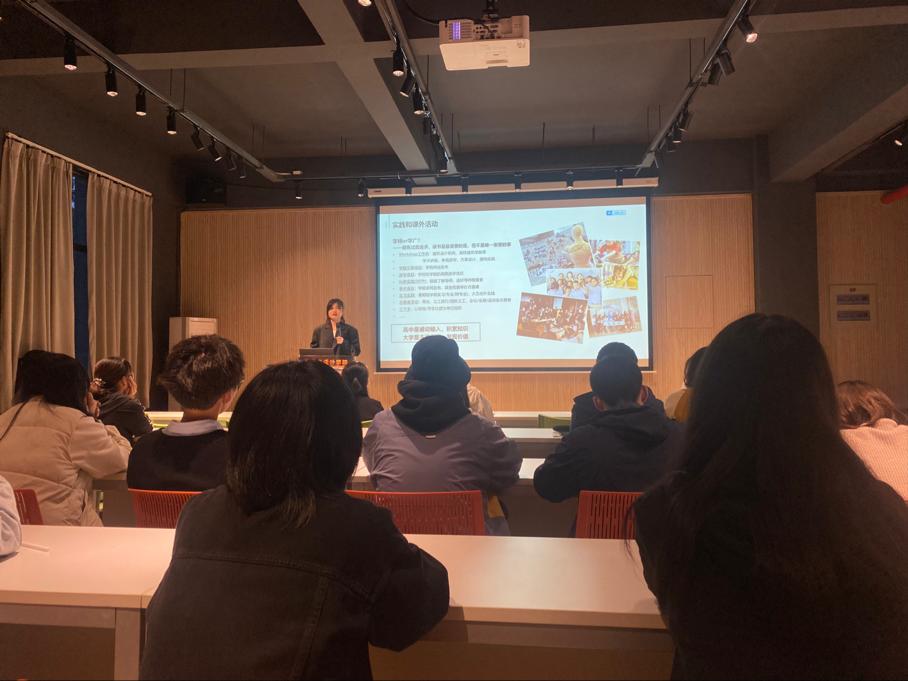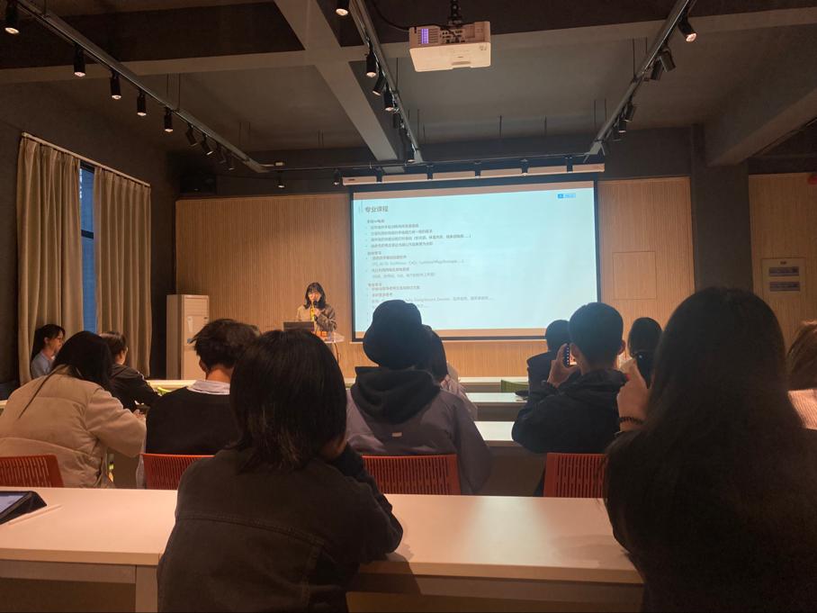首先由刘艾娜学姐为同学们讲解专业课程、其他课程和专业竞赛的知识,她强调在专业课学习上要积极与指导老师交流与探讨方案,多积累多思考,多阅读相关的专业书籍,在其他课程上要重视英语尽早通过四六级,并鼓励同学多多参加竞赛尝试跨学科的合作。之后王筱璇为同学们分享关于实践生活的经验。学姐还着重指出学精和学广的区别,引发同学的深思。接下来由王一初学为同学们分享保研经验,她为同学们展示了准备保研各个时间段应该准备的工作,使同学们的规划更加清晰。最后马文洁学姐为同学分享了关于学业与职业的看法,使同学们更加明白二者之间的不同,为同学未来方向的选择提供了宝贵的参考。在最后的答疑解惑环节,同学积极提问,学姐们耐心回复讲解,现场氛围热烈浓厚。