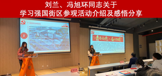 其次,由刘兰同志对“学习强国”街区参观活动进行项目介绍,成都市“学习强国”街区是全国首个“学习强国”主题街区,以“学习强国”为IP,通过5G、云技术、大数据等技术手段,生动宣传习近平新时代中国特色社会主义思想,全面展示成都市建设践行新发展理念的公园城市示范区所取得的成果。党员同志们在“体验式”党史学习中更好地汲取精神力量,进一步发挥了专业之长,积极促进了理论与实践相结合。冯旭环同志在分享参观“学习强国”街区以及城市更新街区后的心得感悟时表示:“风景园林人应该明确自己的使命和担当,为美化人居环境,构建文明和谐社会而奋斗。”