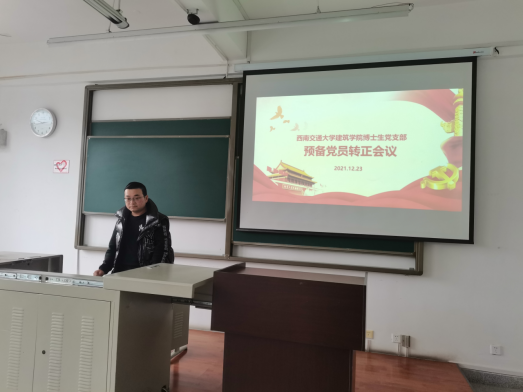 2021年12月23日14时,太阳成集团tyc7111cc博士党支部在X8522教室进行了预备党员转正大会。此次会议中曾如思同志发表转正志愿,并顺利由中共预备党员转为正式党员。