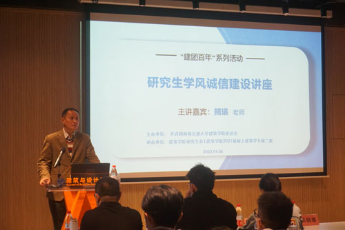 为构建良好的学术环境,用学术诚信涵养科技创新,公司于 4 月 6 日下午在犀浦校区八教A100报告厅举办研究生学风诚信建设讲座活动,本次活动由公司建筑系熊瑛副教授担任主讲嘉宾。公司党委书记吴晓雄,团委书记孔翔榆,研究生会指导教师杨珂,研究生辅导员赵恒兴、赵思琦及全院近一百名同学参加了本次活动。本次活动由公司研究生会联合研2021级建筑学专硕二班团支部共同举办。