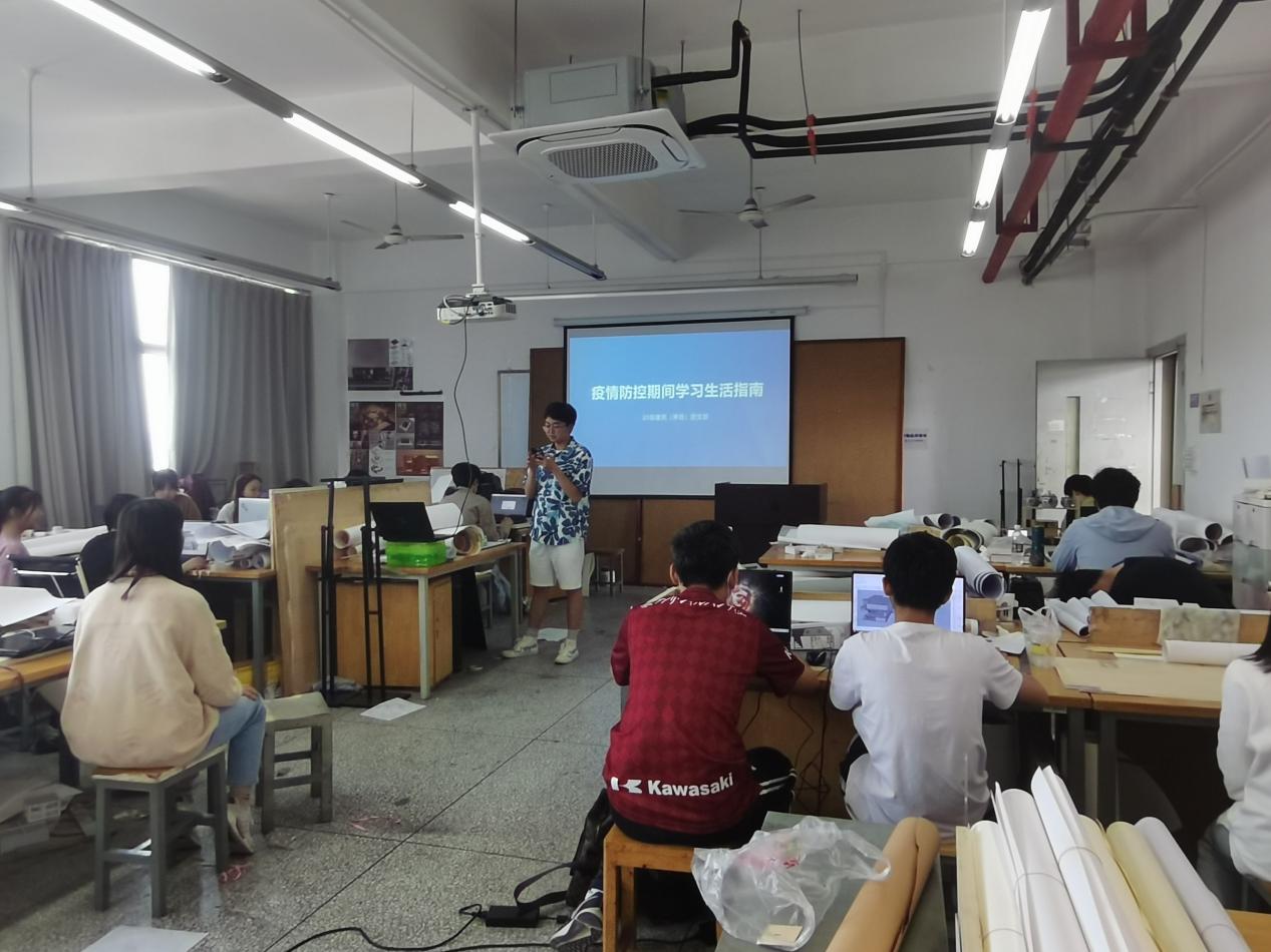 为增强同学们的防疫意识,确保疫情期间员工健康、校园安全和教学秩序,4月7至4月13日,太阳成集团tyc7111cc本科2020级建筑2020-01班、建筑2020-02班、建筑(茅班)2020-01班,城规2020-01班、景观2020-01班、绘画2020-01班以及绘画2020-02班,通过线上会议与线下班会的方式,开展了学习《员工疫情防控期间学习生活健康指南》主题班会。