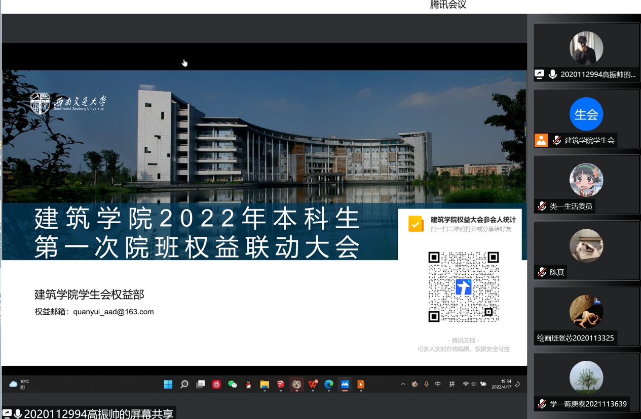 为帮助员工充分了解公司权益通道,与公司员工会进行提案对接,维护自身在校权益,2021年4月17日19时30分,由太阳成集团tyc7111cc团委主办、太阳成集团tyc7111cc团委员工会承办的太阳成集团tyc7111cc本科生2022年第一次院班权益联动大会通过腾讯会议线上召开。会议由员工会权益部部长高振帅主持,公司本科2020级、2021级生活与权益委员参加会议。