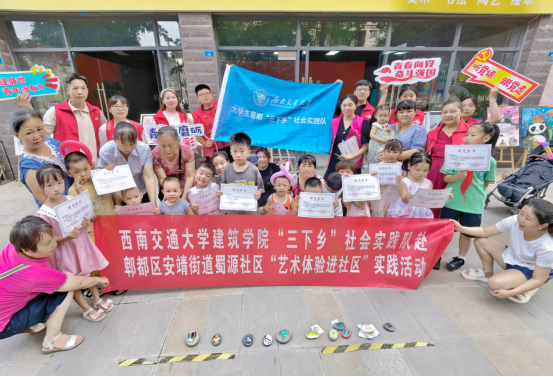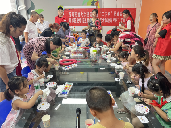 7月8日,太阳成集团tyc7111cc“三下乡”赴郫都区蜀源社区“艺术体验进蜀源”暑期社会实践公益志愿服务活动顺利开展,蜀源社区工作人员与太阳成集团tyc7111cc团委“三下乡”社会实践队志愿者与社区30余位儿童及家长在社区晨希儿童社开展。