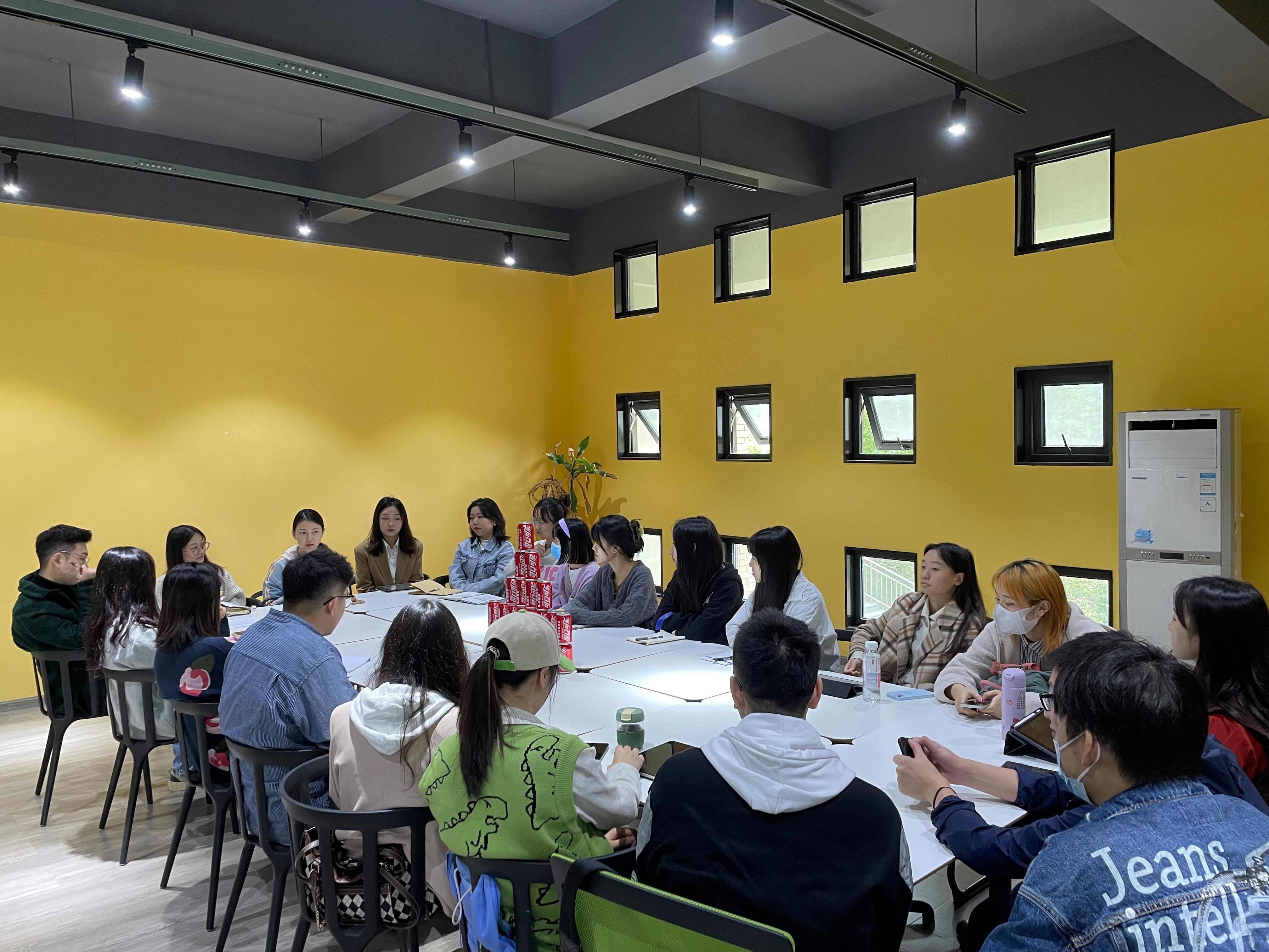 首先杨珂老师对研会新成员表示了热烈欢迎,希望大家在今后能够各个部门积极配合,不断进取。随后,主席团成员杨丹、冯欣芮介绍了研会各部门工作职能以及本学期的主要工作安排计划。接下来,陈琦琪、诸静茹、韦依婷和张弛四位部长分别介绍了四个部门主要工作,部长们强调在未来的工作中需要大家秉承热于奉献求真务实的赤子之心,为公司贡献自己的力量。紧接着,新生干事轮流进行自我介绍,促进了干事们彼此的了解与认识。最后,各个部门开展了自由讨论。会议过程中,大家都表现出了极大的兴奋和热情,掌声连连。
