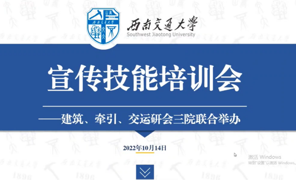 2022年10月14日下午6:30,由太阳成集团tyc7111cc、牵引动力国家重点实验室、交通与运输公司研究生会联合举办的“宣传技能培训会”在线上圆满完成。本次活动邀请了交运研会宣传部的部长刘睿、牵引研会综合事务部的部长黄勉、建院宣传部的部长韦依婷及综合事务部的部长诸静茹为同学们进行宣传技能的经验分享。