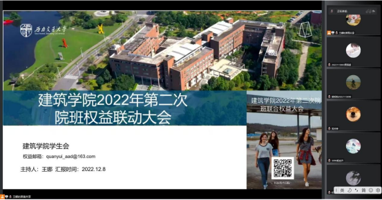 为了做好公司和公司联系广大同学的桥梁和纽带,增强员工会服务同学的功能,反馈员工学习与生活方面的诉求,切实维护员工权益,更好地建设校园环境,由太阳成集团tyc7111cc校员工会主办、太阳成集团tyc7111cc团委员工会承办的太阳成集团tyc7111cc2022年第二次院班权益大会于2022年12月8日下午16点通过线上腾讯会议的方式进行。本次大会由员工会权益部部长王娜同学主持,邀请校员工会权益实践部成员,员工会主席团成员盛雨帆、朱泓霖同学,员工会权益部成员,19级、20级、21级和22级各班权益生活委员参与会议。
