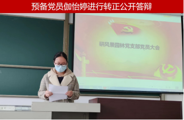 会议伊始,研风景园林党支部召开员工党员大会,根据支部发展党员工作计划,对关于3名发展对象转为预备党员、1名预备党员同志能否按期转正分别进行讨论和表决。发展对象孙悦、秦旌瀚、张可就对党认识、入党动机、思想理论学习的情况、以及阐述自己日常工作、科技竞赛、社会实践、志愿服务等方面中如何践行党员先锋模范作用,最后表明自己坚定不移入党的决心和为人民服务的坚定信念。