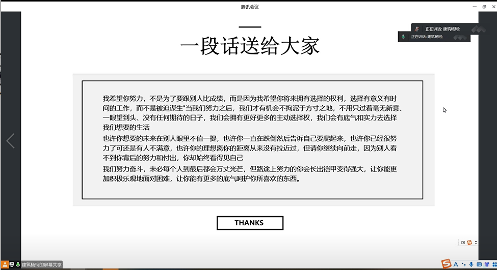 紧接着杨珂老师又帮助同学们梳理了2022年9月到新学期开始的时间线。并且针对于“懒惰”“拖延”等情况,告诫大家:”其实懒惰是一个特别奇怪的事情,它使你以为这是安逸、是休息、是福气。实际上给你带来的是无聊、是消沉、是倦急,..它剥夺你对前程的希望,隔断你和别人之间的友情,使你的心胸日益的狭窄,对人生也越来越怀疑。