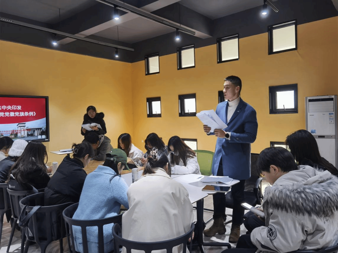 2023年11月23日上午11:00,本科城乡规划党支部于犀浦校区建筑公司图书馆前厅开展主题党日活动,会议由党支部书记奉天同志主持,本科城乡规划党支部党员、预备党员共同参与。