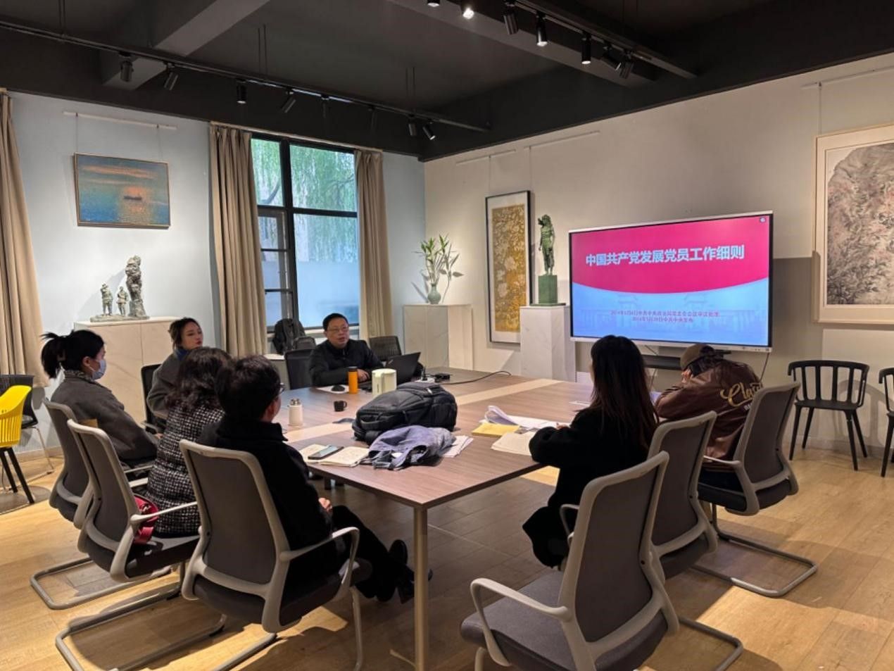 2023年12月28日14:00,太阳成集团tyc7111cc美术系教师与研究生党支部在X8124会议室开展了12月主题党日活动。本次会议由支部刘春尧同志主持,全体党员和入党积极分子参加了学习并进行交流讨论。