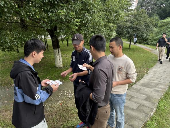 活动以团体徒步的形式开展,老师们自行组队。组委会精心选取了犀湖周边中5处打卡点,从犀湖钟楼边草坪出发,绕犀湖一圈。