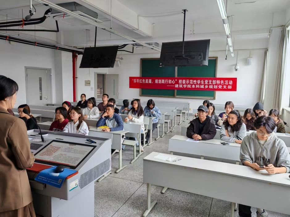 为学习和弘扬中华民族的优秀革命文化,2024年10月31日14:30,本科城乡规划党支部在X8522开展“探寻红色底蕴,规划践行初心”红色研学基地规划设计系列活动,会议由党支部书记金凤同志主持。