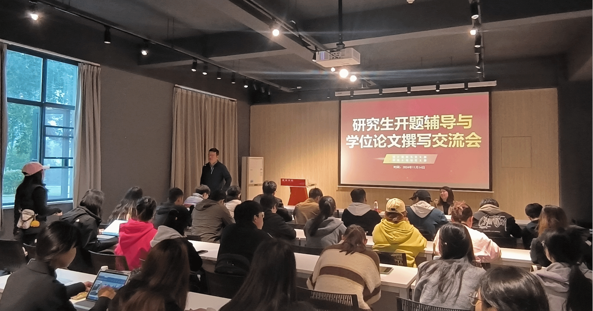 活动伊始,于洋教授强调了研究生开题和学位论文撰写的重要性。他表示,论文撰写不仅是学术研究的重要组成部分,也是衡量研究生学术能力的关键指标。随后,同学们结合自身写作过程中面临的难题,进行了踊跃提问。于洋教授围绕论文核心内容、开题报告篇幅、跨学科研究内容等问题进行耐心解答,为研究生的开题报告和学位论文撰写指明了方向。杨钦然副教授就研究生阶段论文写作时间安排、毕业论文各章节的写作思路、研究问题的核心要点等方面展开了详细解答,并鼓励同学们将论文写作视为综合能力的训练,培养条理清晰的思考能力,学会有深度、有条理地表达。