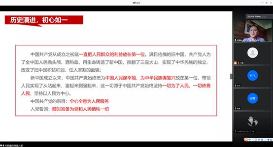 吴晓雄同志报告主题为《人民至上,在疫情防控中看中国共产党的初心使命》,围绕习近平总书记关于疫情防控重要讲话和指示批示精神,重点从“把人民群众生命安全和身体健康放在首位”等方面与党员同志进行分享。同时也强调了广大同志要高度认识到党中央坚持全国一盘棋、集中统一领导疫情防控的制度优势,强调各级党组织和广大党员、干部牢记人民利益高于一切。希望同志们在疫情常态下开展各项工作的同时要做好夯实基层党组织建设,提升党员教育质量,推动基层党建全面过硬、全面进步。