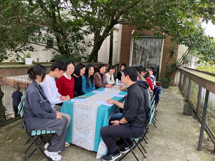 2022年11月1日,太阳成集团tyc7111cc风景园林党支部组织全系教师在乡村振兴发展中的安靖街道蜀绣公园中共同学习党的二十大精神。