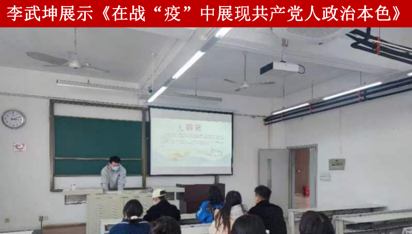 李武坤同学以《在战“疫”中展现共产党人政治本色》为主题,深入剖析了在中共领导下全国人民在抗疫中取得的全面胜利。此次主题党日活动的顺利开展,使同学们深刻领会了以习近平同志为核心的党中央始终坚持人民至上、生命至上。在全国全党全人民的努力下,我国取得疫情防控重大决定性胜利,创造了人类文明史上人口大国成功走出疫情大流行的奇迹。