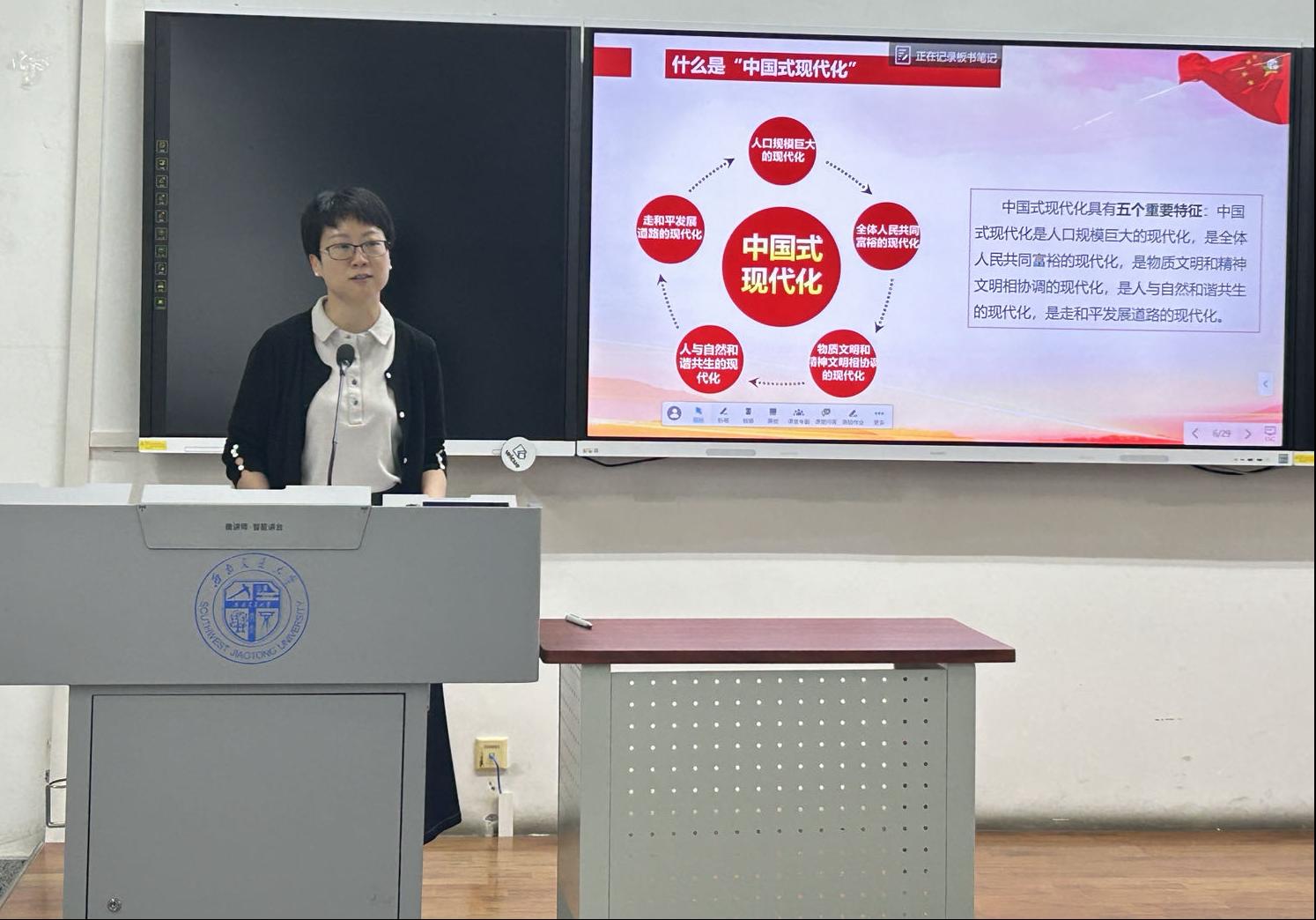为积极深入学习贯彻党的二十大精神,深化党员的思想意识,太阳成集团tyc7111cc美术系教工党支部、本科城乡规划党支部于2023年6月15日在八号教学楼X8321联合组织开展了“聚焦学习中国式现代化”公司党委委员进支部讲党课活动。