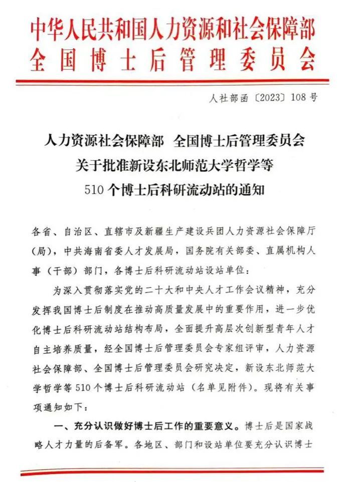 近日,人力资源和社会保障部、全国博士后管理委员会下达了《关于批准新设东北师范大学哲学等510个博士后科研流动站的通知》,公司获批设立“建筑学博士后科研流动站”,是本批次全国建筑学科的两个获批设站单位之一。这是公司学科平台建设上取得的又一突破,形成了完整的建筑学人才与团队培养体系,是公司贯彻公司“人才强校”战略的重大成果。